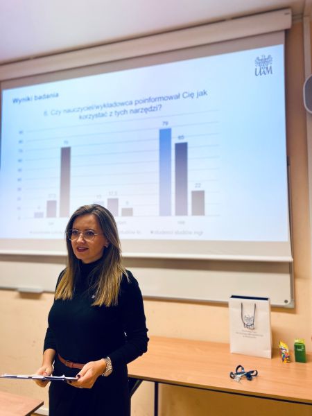 Zaprezentowane przez dr Kingę Kowalewską z Zakałdu Ekolingwistyki i Komunikologii wyniki badań empirycznych przeprowadzonych na grupie uczniów szkół podstawowych oraz studentów uczelni wyższych wywołały żywą i ważną dyskusję wśród reprezentantów różnych instytutów naszego Wydziału.